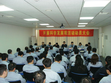 動員大會由總經(jīng)理孫龍平同志主持。會上,首先宣讀了《關(guān)于成立公司學(xué)習(xí)實(shí)踐科學(xué)發(fā)展觀領(lǐng)導(dǎo)小組的通知》,荏原博泵黨總支副書記姜作棟同志宣讀了公司《深入學(xué)習(xí)實(shí)踐科學(xué)發(fā)展觀活動的實(shí)施方案》,明確了各階段的任務(wù)要求和具體責(zé)任人,并公布了公司信箱、意見箱,鼓勵(lì)廣大黨員、群眾對公司開展好學(xué)習(xí)實(shí)踐科學(xué)發(fā)展觀活動獻(xiàn)計(jì)獻(xiàn)策。