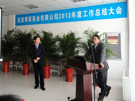 王總在講話中用詳實(shí)的數(shù)字,明晰的圖表,做了細(xì)致地分析和總結(jié)。對(duì)2012年之前的工作做了主觀和客觀的原因分析。在2013年的工作總結(jié)中,王總用成績(jī)和不足來(lái)概括:在2013的工作中,營(yíng)業(yè)工作取得比較突出的成績(jī),取得了訂單創(chuàng)新高;百萬(wàn)機(jī)組項(xiàng)目100%容量訂單的簽訂等亮點(diǎn),特別可喜的是,在EPC印尼項(xiàng)目中,鍋爐給水泵、循環(huán)水泵、凝結(jié)水泵一次性簽單,這在公司歷史上乃至行業(yè)中都是很少見的。在生產(chǎn)方面:發(fā)貨臺(tái)數(shù)創(chuàng)公司歷史之最;車間5S管理取得良好進(jìn)展;產(chǎn)品不合格率得到有效控制。在其他方面:公司采購(gòu)引入比價(jià)采購(gòu)環(huán)節(jié),降低采購(gòu)成本;C型泵的改善方面,提高采購(gòu)批量,降低采購(gòu)價(jià)格,滿足生產(chǎn)各環(huán)節(jié)的需要。不足之處:營(yíng)業(yè)方面行業(yè)訂單結(jié)構(gòu)不平衡;生產(chǎn)環(huán)節(jié)中生產(chǎn)秩序的保證、外購(gòu)件的合格率以及設(shè)計(jì)出圖的時(shí)間有待改善;ERP環(huán)節(jié)錄入數(shù)據(jù)的及時(shí)性、準(zhǔn)確性方面還有待提高等等。
